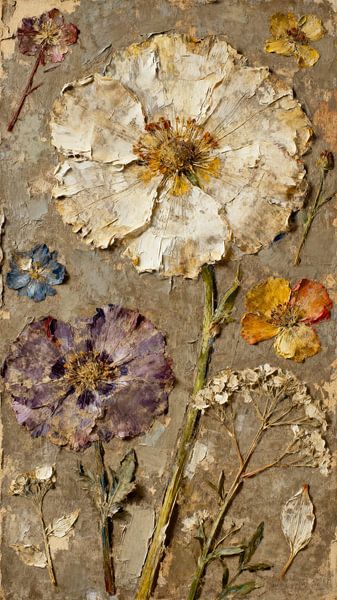 Bestelle dieses moderne Wandbild Blumenkomposition in Spachteltechnik von Kristin M als Kunstdruck auf Leinwand, Alu-Dibond, als Poster, Fototapete oder Acrylglasbild.