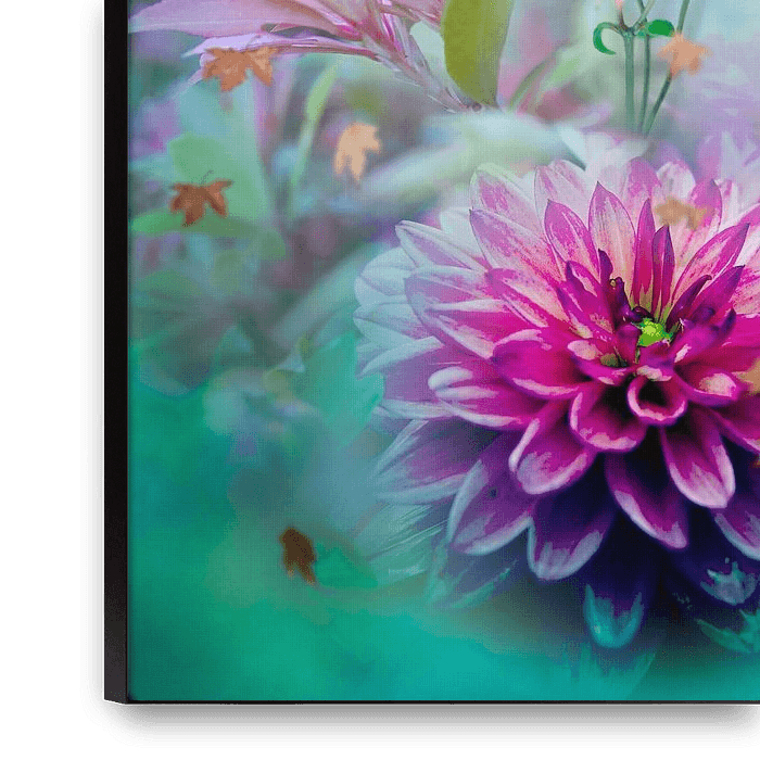 Ihre gewählte Kunst auf Leinwand, gespannt in einem Aluminiumrahmen. Schnell und einfach austauschbar für eine frische Ausstrahlung und ganz nach Ihren Wünschen.
