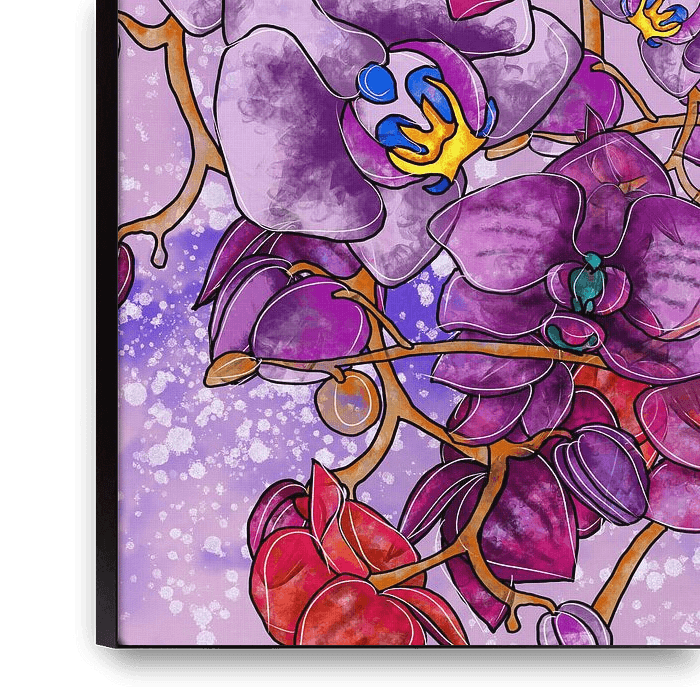 Bunte Orchideen auf Lila Hintergrund - Dieses Gemälde zeigt die Orchideen (Orchidaceae) in all ihren Farben: Rot, Blau, Lila, Rosa und Burgunder. Orchideen sind eine der beliebtesten Blumen - sie blühen lange und sind einfach wunderschön. Die bunten Blüten dieser Blume sind einzigartig.