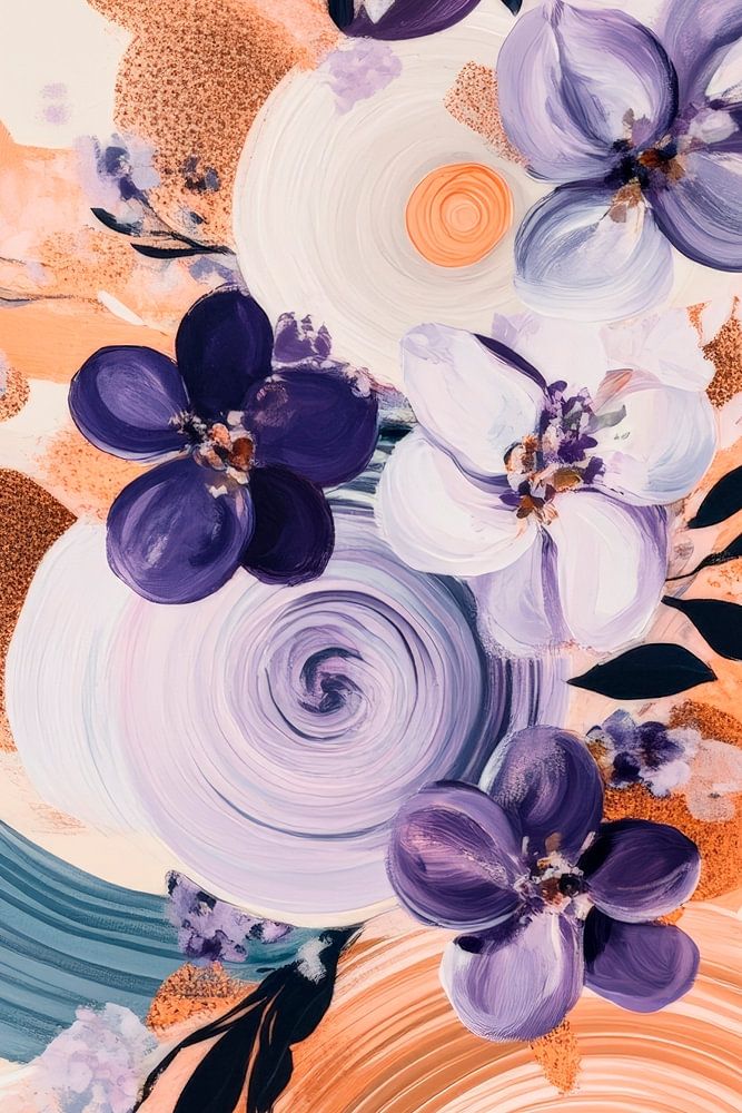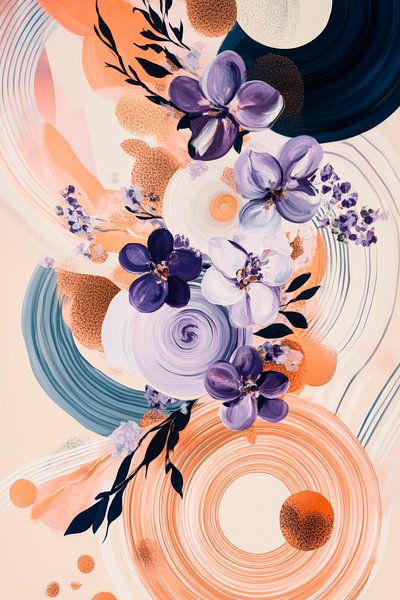 Sanfte Farbtöne von Lila und Pfirsich verschmelzen harmonisch mit geschwungenen Linien und floralen Akzenten. Die dynamische Komposition erzeugt eine einladende Atmosphäre, ideal für ein Wohnzimmer oder eine kreative Ecke. Diese Kunst lässt jeden Raum lebendig wirken und inspiriert zu Gesprächen und Entspannung. Ein perfekter Blickfang!