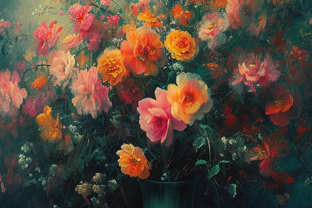 Blumenstillleben Neon | Floral Ember Illusion - buntes Blumenstillleben
