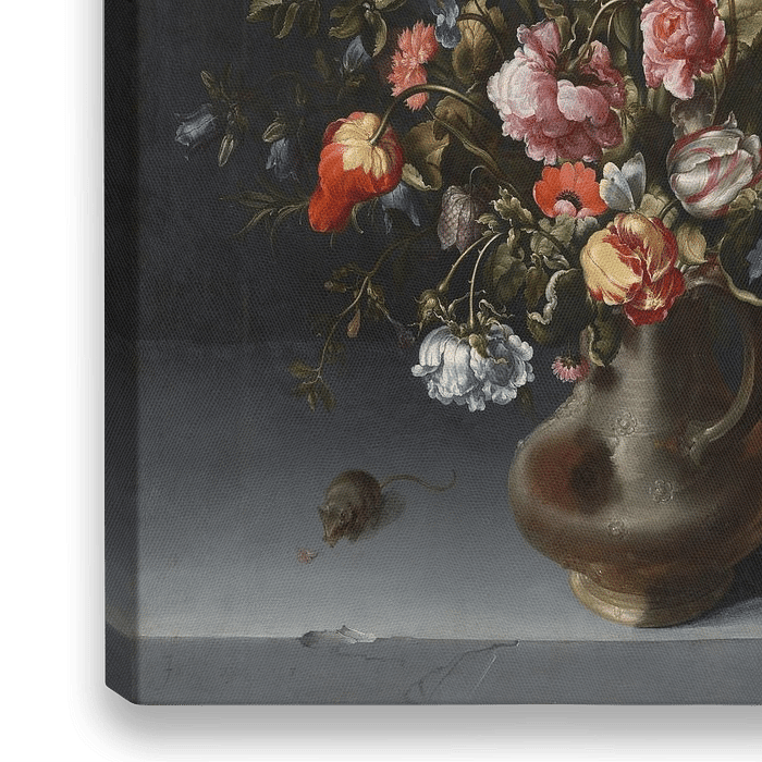 Bestelle Blumenstillleben mit Kronen-Kaiserfalter in einer Steinnische, Jacob Vosmaer als Reproduktion auf Leinwand, Alu-Dibond, als Poster, Fototapete oder Acrylglasbild.