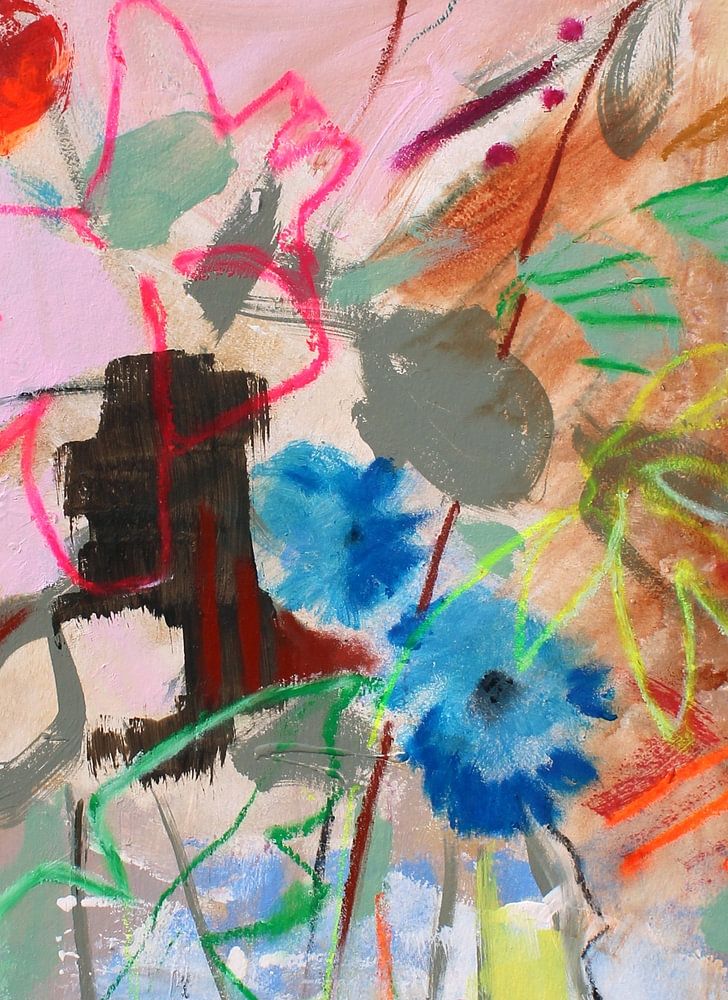 Gemälde mit abstrakten Blumen.