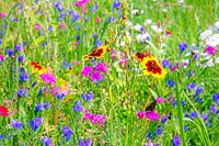 Bestelle dieses Blumen-Wandbild Blumenwiese im Sommer von ManfredFotos als Reproduktion auf Leinwand, Alu-Dibond, als Poster, Fototapete oder Acrylglasbild.