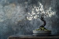 Über „Bonsai-Baum auf einem grauen, robusten Tisch“ von Digitale Schilderijen