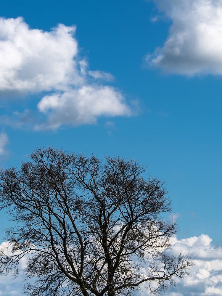 Boompje langs de Canterlandse weg tussen het buurtschap Miedum en de Friese hoofdstad Leeuwarden met een voorjaars wolkenlucht.