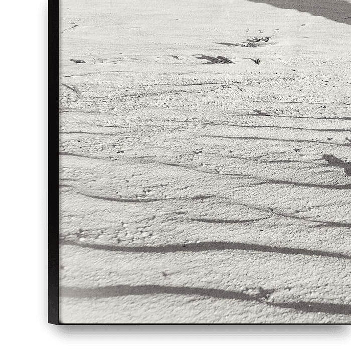 De panorama foto van deze boomstronk heb ik net voor zonsondergang gefotografeerd in de Drunense Duinen. De lage zon werpt een lange schaduw achter de boomstam, en de golvingen in het zand worden goed zichtbaar. De zwart wit bewerking met een zeer lichte sepia kleuring laat alle details goed uitkomen. Heeft u liever een kleurenbewerking…