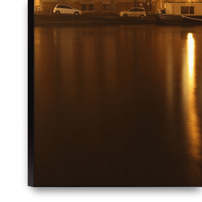 Bestelle das Foto Boot in de gracht, Leiden - nachtopname von Chantal Cornet als Reproduktion auf Leinwand, Alu-Dibond, als Poster, Fototapete oder Acrylglasbild.