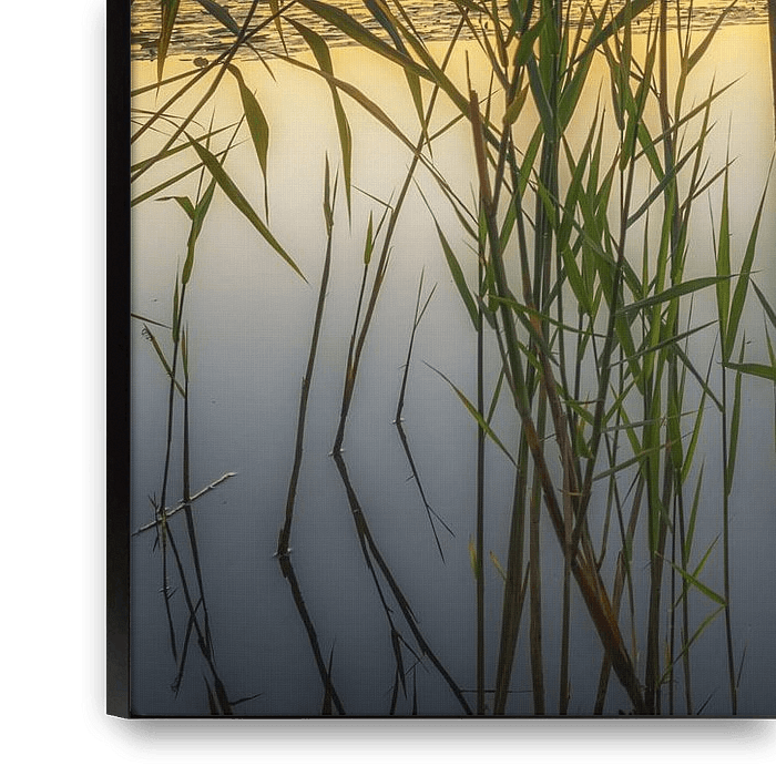 Bestelle dieses Landschafts-Wandbild Boote am Teich von Maikel Brands als Reproduktion auf Leinwand, Alu-Dibond, als Poster, Fototapete oder Acrylglasbild.