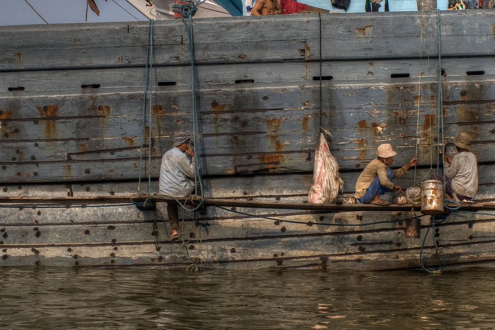 Im alten Hafen von Jakarta wird fast alles von Hand gemacht, auch der Anstrich des Bootes.