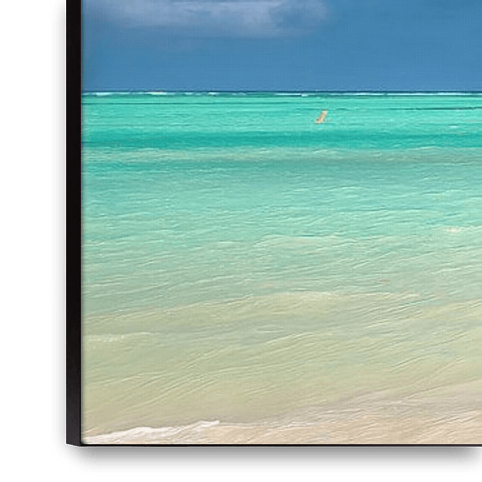 Ihre gewählte Kunst auf Leinwand, gespannt in einem Aluminiumrahmen. Schnell und einfach austauschbar für eine frische Ausstrahlung und ganz nach Ihren Wünschen.