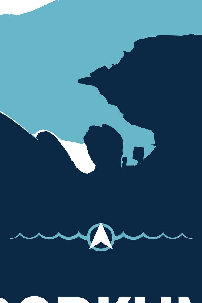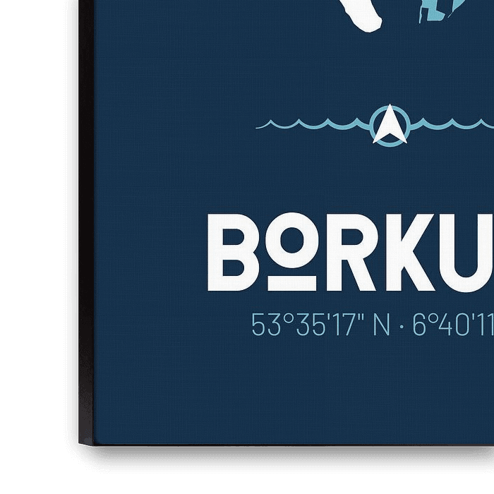 Borkum – die Urlaubs-Insel vor der Küste Ostfrieslands als minimalistische Landkarte. Dekoratives Design für alle Nordsee-Fans, die Lust auf Meer haben – auch als Geschenk-Idee!