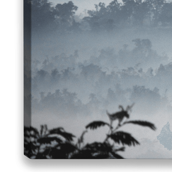 Der Borobudur, das buddhistische Heiligtum in Java. Dieses Bild wurde vor Sonnenaufgang von einem nahe gelegenen Hügel aus aufgenommen, als der Borobudur langsam aus dem Morgennebel auftauchte.