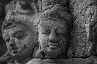 Eine Nahaufnahme eines der vielen schönen Kunstwerke an den Wänden des Borobudur in der Nähe von Magelang, Zentraljava