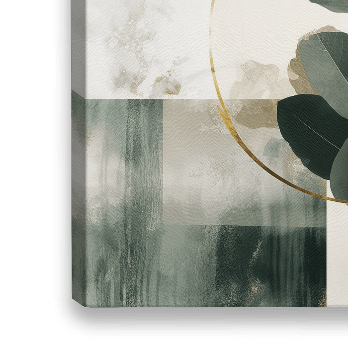 Botanisch, modern und abstrakt in Grün und Gold. Wählen Sie das Format und das Druckmaterial selbst und passen Sie dieses Werk an Ihre Einrichtung an.
