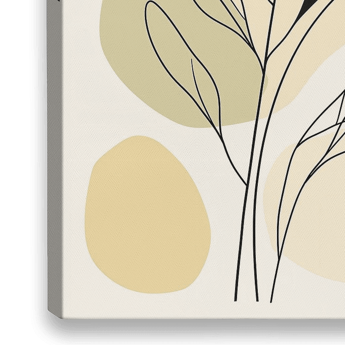 Dieses Kunstwerk verkörpert die Essenz eleganter Schlichtheit und natürlicher Weichheit. Zarte schwarze Linien bilden abstrakte Blätter und Blüten vor einem Hintergrund aus weichen, organischen Formen in warmen Pastelltönen. Die Komposition strahlt Ruhe und Harmonie aus, wobei der minimalistische Stil ein Gefühl von Leichtigkeit und…
