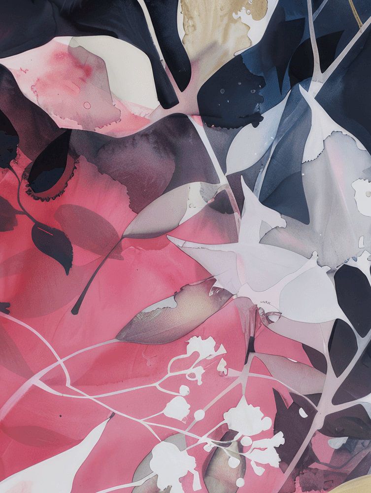 Botanischer Abstrakt im japanischen Stil. Wählen Sie Ihre eigene Größe und Material für dieses Werk und machen Sie es zu einem besonderen Blickfang für Ihr Interieur.