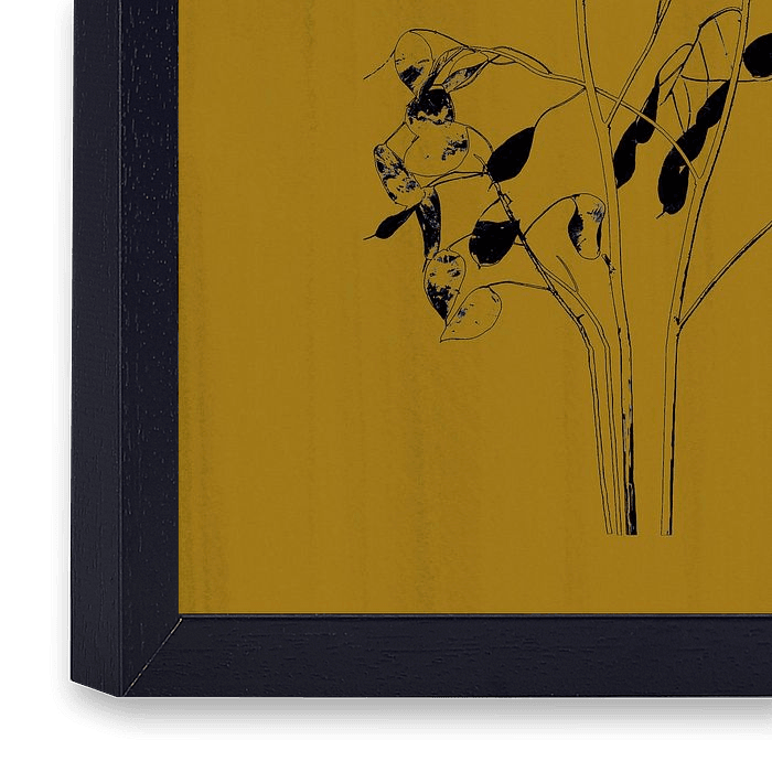 Ein modernes Interieur ist nicht vollständig ohne einen schönen botanischen Druck. Auf diesem Druck sehen Sie das Silberblatt, Lunaria. Die schöne ockergelbe Hintergrundfarbe passt zu vielen Einrichtungsstilen.