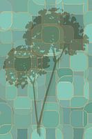 Botanische Kunst mit einer Anspielung auf Mosaik. Verschiedene Grün- und Türkistöne mit einem goldenen Touch - anmutig und graziös. Hotel Chic