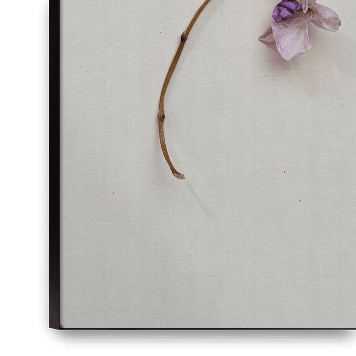 Ein schönes, ruhiges Bild einer getrockneten Orchidee. Form, Textur, Farbe und Licht bilden ein beruhigendes, romantisches Ganzes. Eine wunderbare Ergänzung für Ihr modernes Interieur!