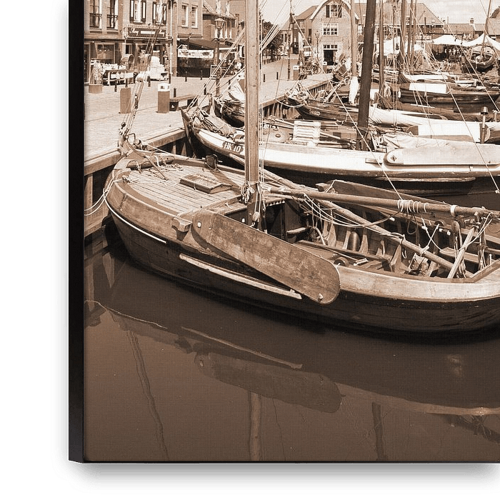 Sepia foto van botters (zeilschepen) in de haven van Spakenburg.