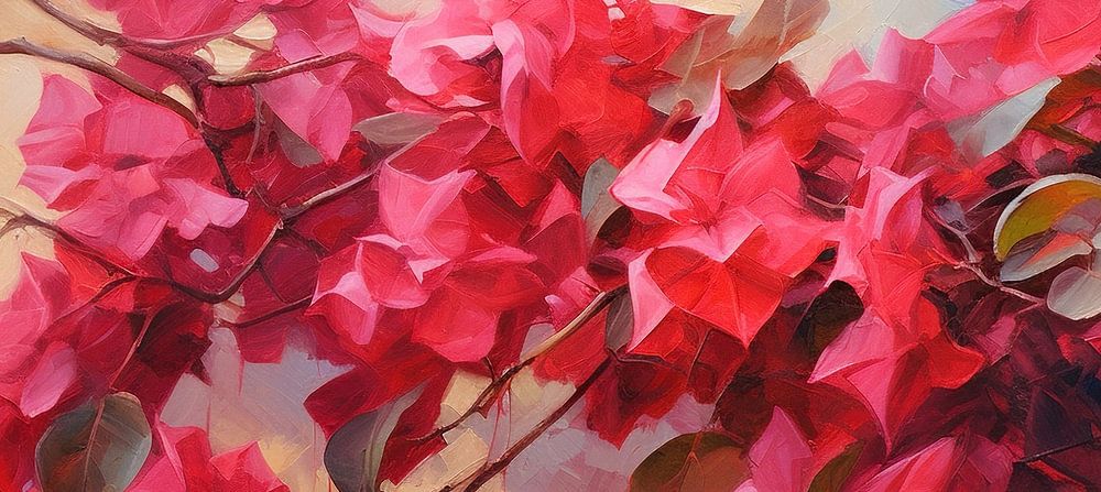 Details: Bougainvillea, Blumengemälde, rosa Blumen, Blumenkunst, natürliche Schönheit, Leinwand, lebendig, Dekor, Heimdekoration, Kunstsammlung