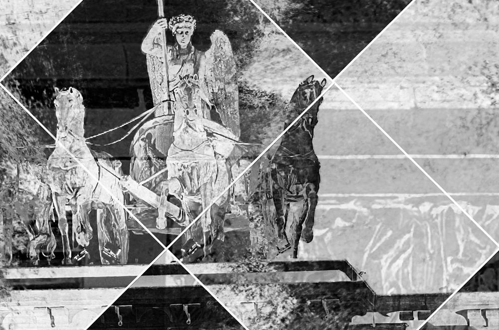 Eine Fotografie des Brandenburger Tors in Berlin schwarz weiß entwickelt