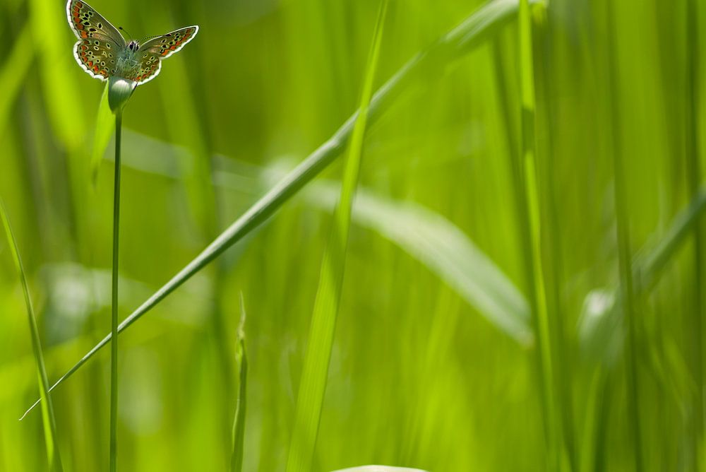 Dieses Foto zeigt einen kleinen Schmetterling (Brauner Bläuling) in seinem natürlichen Lebensraum. Ich habe den Schmetterling klein dargestellt, um seinen Lebensraum zu betonen. Durch das Fotografieren des Bläulings im Gegenlicht entsteht ein Rand entlang der Flügel, der den Schmetterling hervorhebt und die Aufmerksamkeit auf dem Foto sofort auf sich zieht. Dies ist wirklich ein Foto, das man sich groß an die Wand hängen sollte. Ich könnte mir sogar ein Zimmer vorstellen, in dem eine Wand mit diesem Foto tapeziert ist. Die Schärfe und die Auflösung des Fotos eignen sich perfekt dafür.