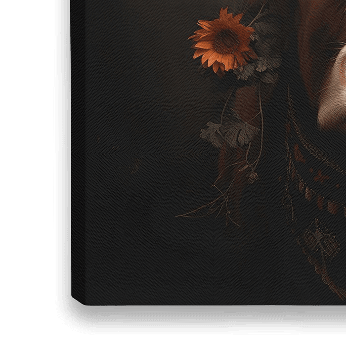 Bestelle dieses Blumen-Wandbild Braunes Rind mit Blumenschmuck von YArt als Reproduktion auf Leinwand, Alu-Dibond, als Poster, Fototapete oder Acrylglasbild.