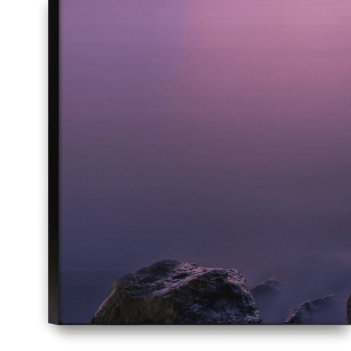 Ihre gewählte Kunst auf Leinwand, gespannt in einem Aluminiumrahmen. Schnell und einfach austauschbar für eine frische Ausstrahlung und ganz nach Ihren Wünschen.