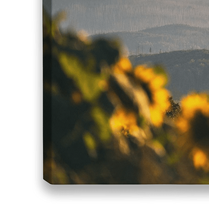 Brocken im Harz mit Sonnenblumenfeld bei Sonnenuntergang. Aufgenommen in Wernigerode.