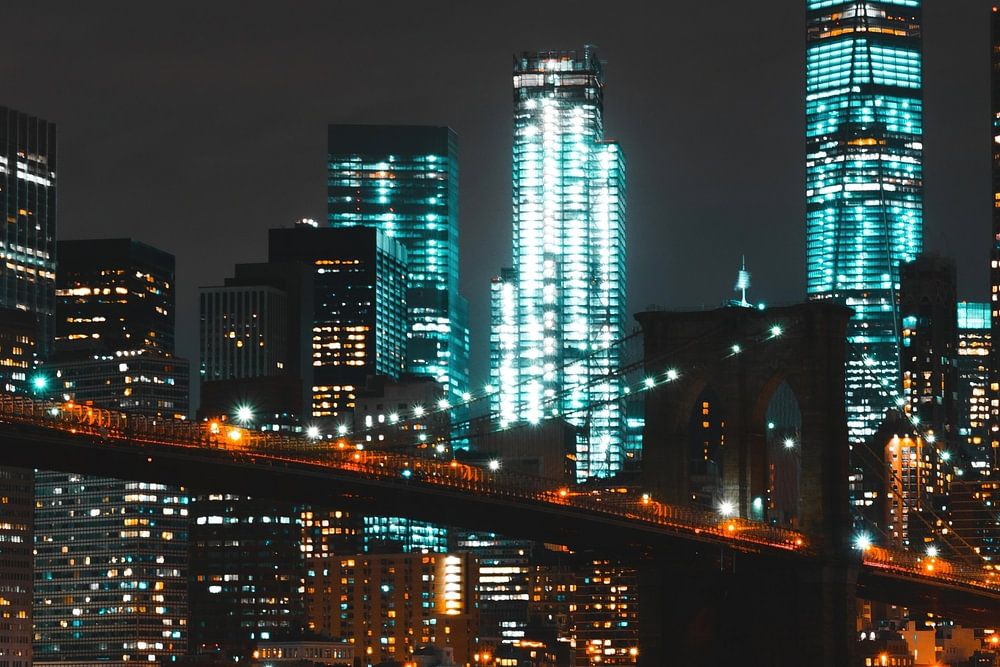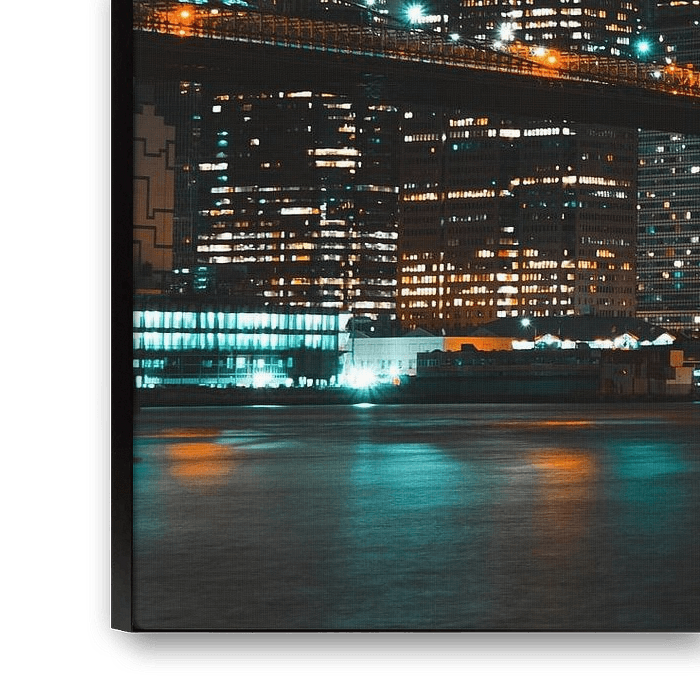 Die Brooklyn Bridge zieht eine ruhige Diagonale über den East River, während sich die Innenstadt in Lichtschichten erhebt. Fenstergitter wirken wie Sternbilder, und der Fluss wird zu einem weichen Spiegel, der ein sanftes Leuchten zum Betrachter trägt. Die Szene zeichnet sich durch saubere Kanten und ausgewogene Kontraste aus, so dass jedes Kabel und jeder Turm ohne Blendung lesbar bleibt.