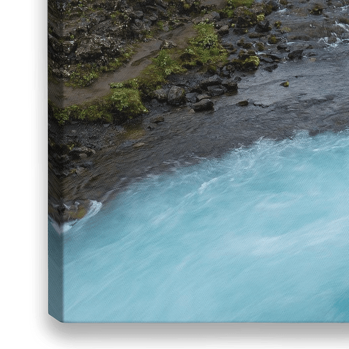 Schöner Wasserfall im Süden von Island. Ein breiter Fluss, der zu diesem schönen Wasserfall führt. Das blaue Wasser gibt einen schönen Effekt in der isländischen Landschaft.