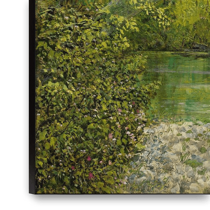 Bestelle dieses Blumen-Wandbild Brücke über Teich von Art Demo als Reproduktion auf Leinwand, Alu-Dibond, als Poster, Fototapete oder Acrylglasbild.