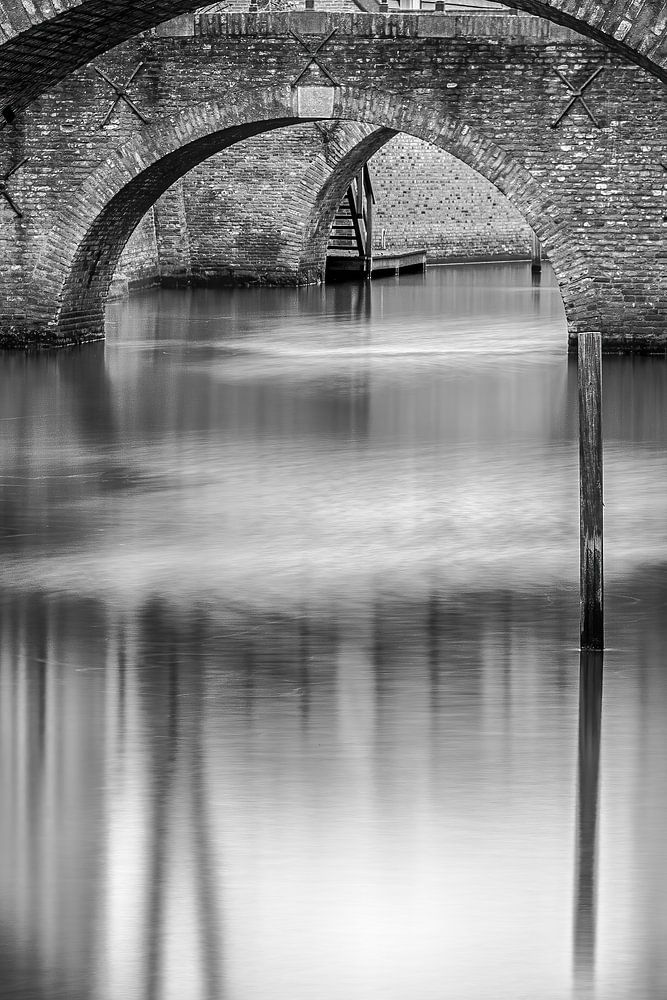 Die lange Belichtungszeit macht das Wasser glatt und die Reflexion der Brücke besser sichtbar.