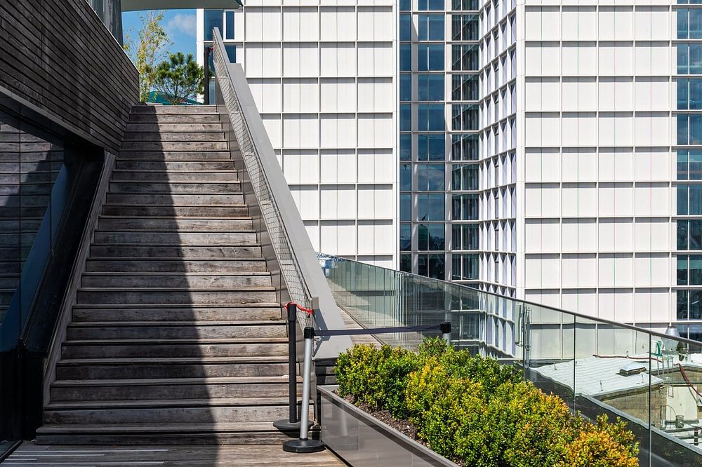 Vom Rooftop 58, dem Verwaltungszentrum Brüssels, hat man nicht nur einen tollen Blick auf die weite Umgebung: Die Dachterrasse selbst ist auch architektonisch sehr interessant...