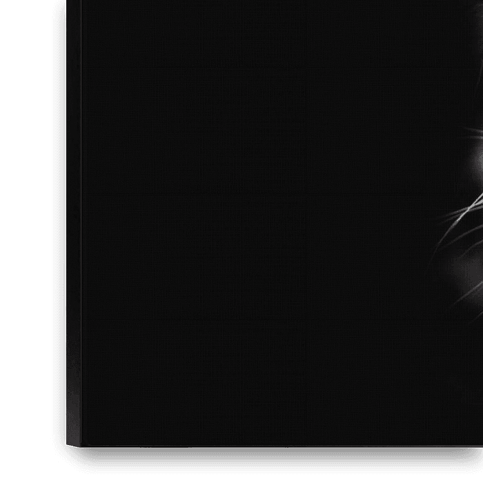Bestelle das digitale Kunst Bild Brutale Schwarz-Weiß-Foto von einem Leoparden Gesicht mit einem strengen Blick Nahaufnahme, schwarze von Michael Semenov als Reproduktion auf Leinwand, Alu-Dibond, als Poster, Fototapete oder Acrylglasbild.