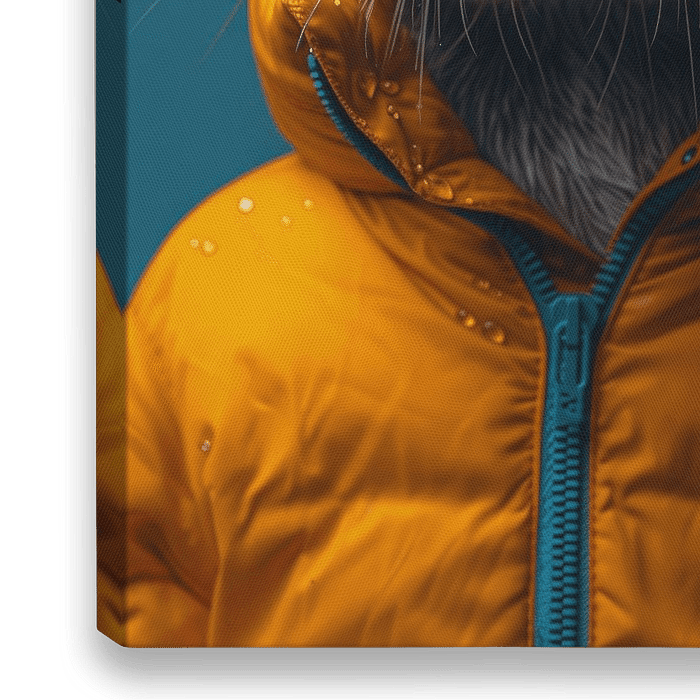 Der fröhliche Otter trägt einen orangefarbenen, wasserabweisenden Mantel und eine übergroße, rosa getönte Brille, die seinen neugierigen Blick unterstreicht.…