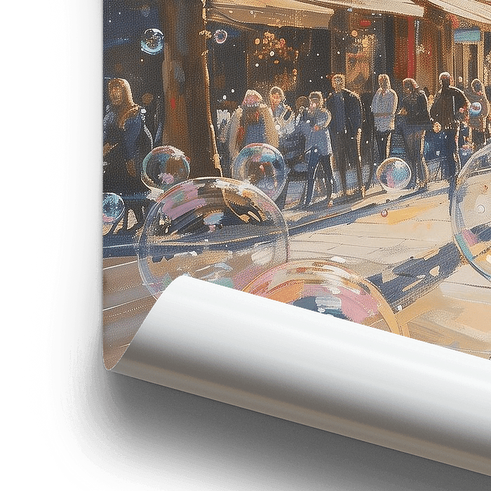 "Bubbles in Paris" fängt die pulsierende Energie einer belebten Straßenszene vor der majestätischen Sacré-Cœur in Paris ein. Als Künstlerin wurde ich von der Dynamik der französischen Hauptstadt inspiriert, wo das geschäftige Treiben der Großstadt auf eine verträumte Atmosphäre trifft.