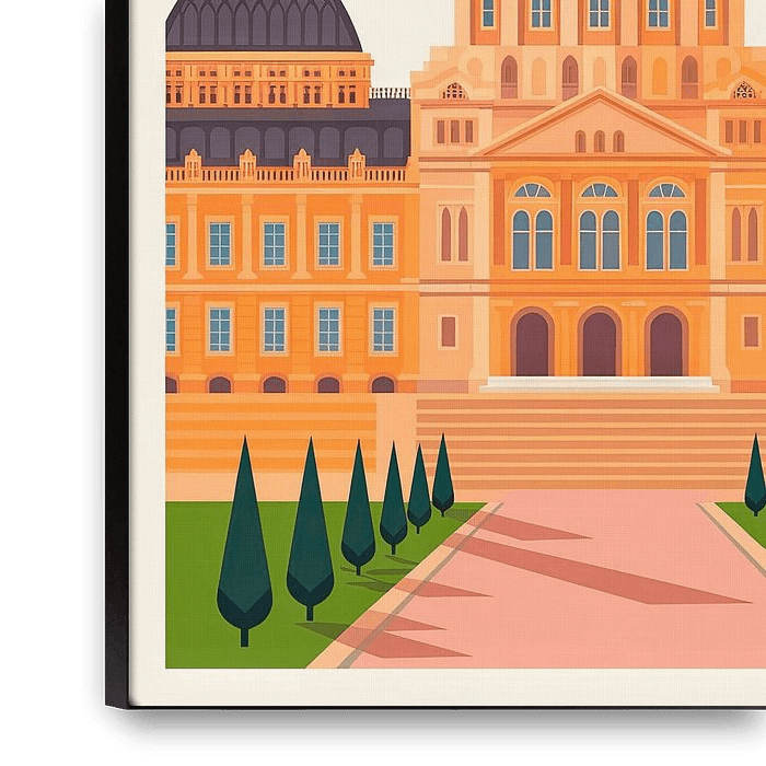 Ihre gewählte Kunst auf Leinwand, gespannt in einem Aluminiumrahmen. Schnell und einfach austauschbar für eine frische Ausstrahlung und ganz nach Ihren Wünschen.