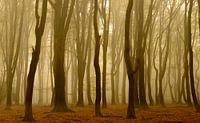 Sehen Sie in einem Buchenwald an einem schönen nebligen Morgen im Herbst.