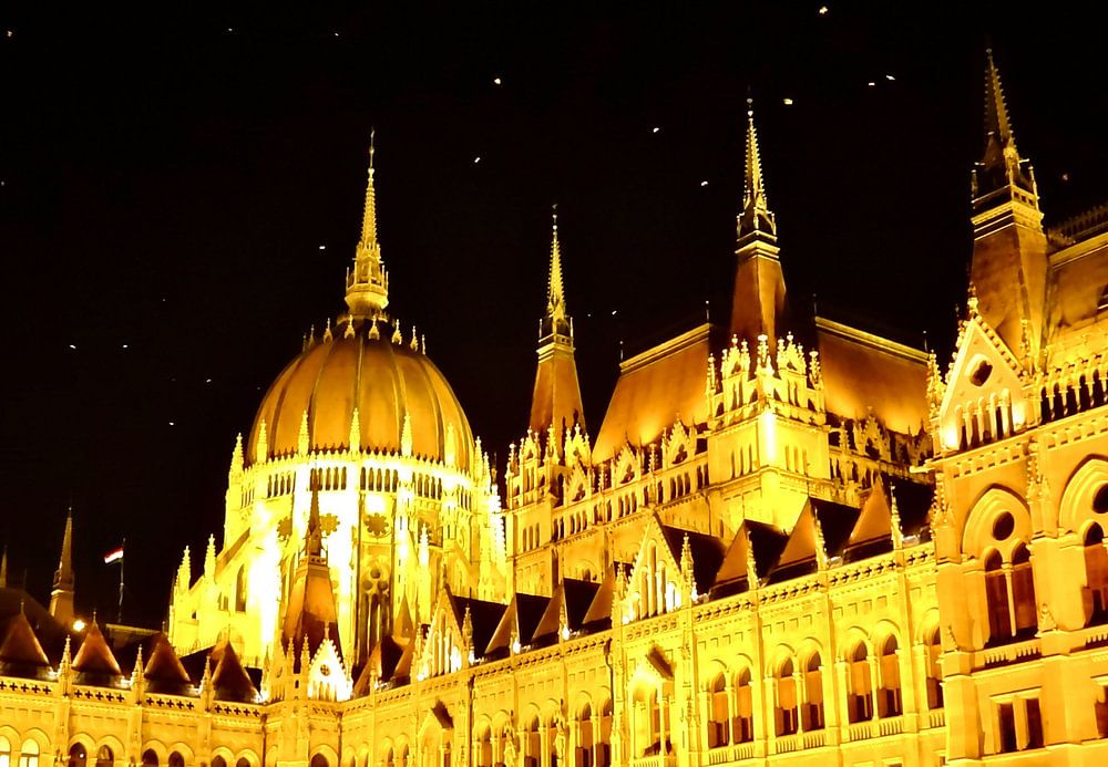parlementsgebouw Budapest gefotografeerd in de nacht.