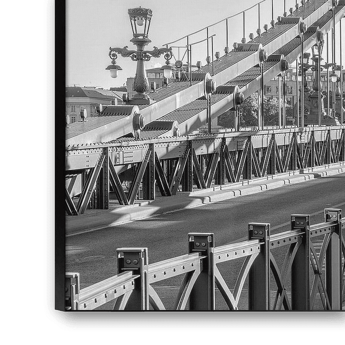 Löwenstatue von der Kettenbrücke von Budapest in schwarzweiß.