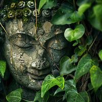 Bestelle das digitale Kunst Bild Buddha-Statue inmitten von Pflanzen von Poster Art Shop als Reproduktion auf Leinwand, Alu-Dibond, als Poster, Fototapete oder Acrylglasbild.