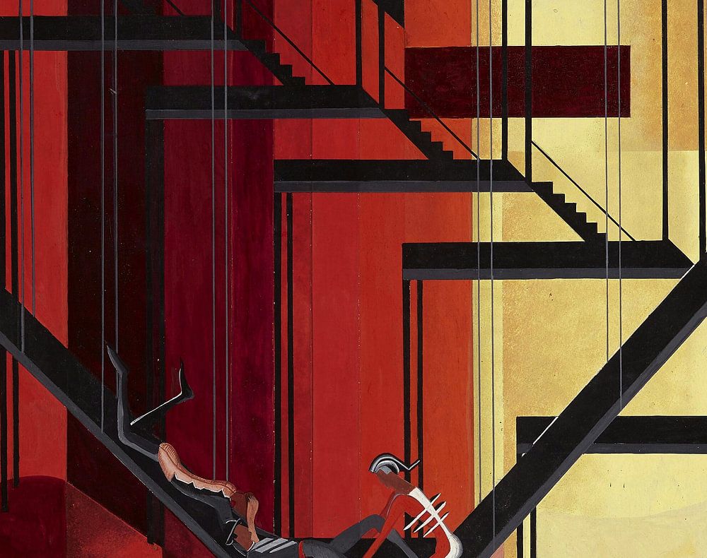 Zeichnung mit einem Entwurf für ein Interieur, ein Dekor für die Bühne. Das Stück Don Juan in der Hölle, der dritte Akt von Man and Superman von George Bernard Shaw. Ausgehend von der Haupthandlung des Stücks ist dieser Akt eine nicht-realistische Traumepisode. Der Dialog für vier Schauspieler ist Sprechtheater in seiner besten Form und wird oft als eigenständiges Stück aufgeführt.