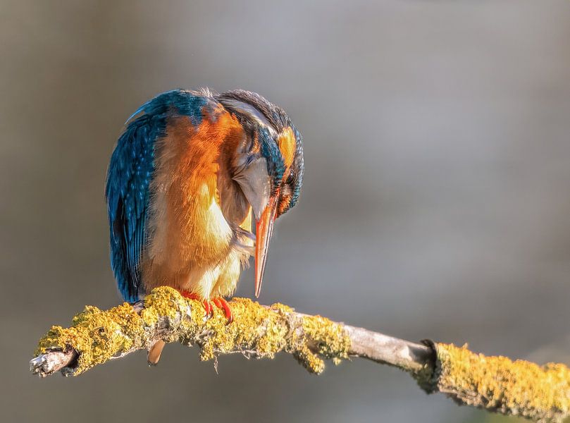 Dieser Eisvogel sitzt beim Putzen nach dem Fischen, das kann er eine halbe Stunde lang am Stück tun.