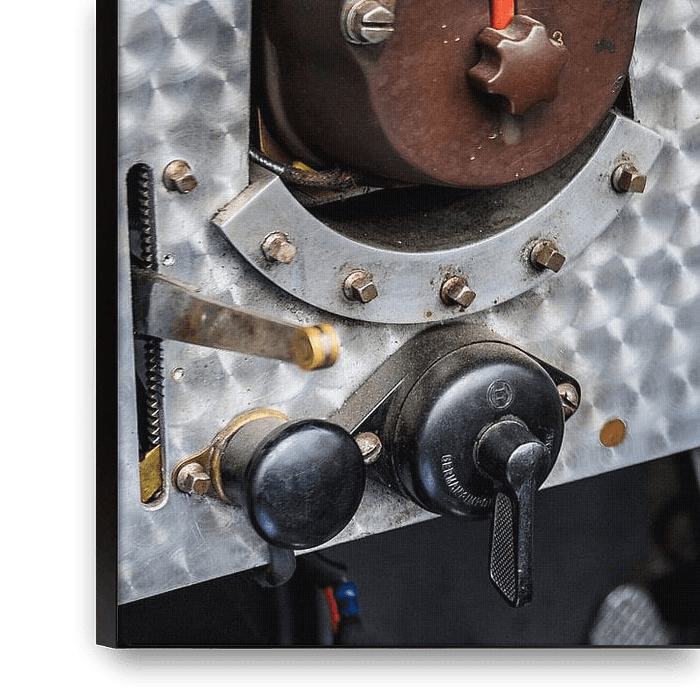 Detail im Innenraum auf einem Bugatti Typen 35 Weinlesejahr-Rennwagen. Der Bugatti Typ 35 war ein sehr erfolgreiches laufendes Auto in seiner Zeit und wurde in einigen verschiedenen Versionen produziert.