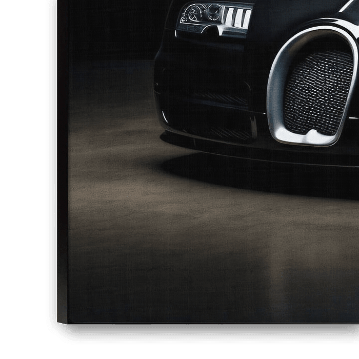 Schwarzer Bugatti Veyron-Supersportwagen, der automobilen Luxus, Leistung und Prestige vor dunklem Hintergrund demonstriert.
