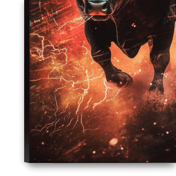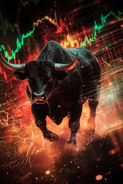 Dynamische Energie durchströmt den Raum: Ein kraftvoller Stier symbolisiert Stärke und Aufbruchsstimmung, während lebendige Farben und pulsierende Linien die Aufregung des Marktes widerspiegeln. Ideal für das Büro, inspiriert dieses Kunstwerk zu ehrgeizigen Entscheidungen und beflügelt die kreative Denkweise. Ein echter Blickfang für…