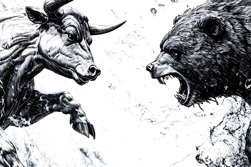 Ein beeindruckendes Design, das den kraftvollen Kampf zwischen einem Stier und einem Bären darstellt. Die Dynamik und der Kontrast dieser Schwarz-Weiß-Komposition schaffen ein visuelles Spektakel, das Emotionen von Macht und Wettbewerb hervorruft. Perfekt für eine moderne Inneneinrichtung und ideal für Liebhaber von kraftvollem Design.
